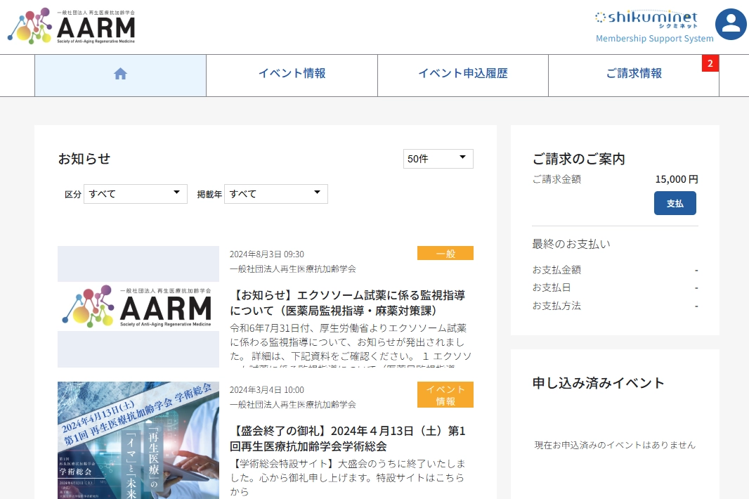 このシステムは、セミナー・シンポジウムをはじめ学会主催各イベントや認定制度等のご案内を円滑に行えるように2024年4月より実行させていただきます。