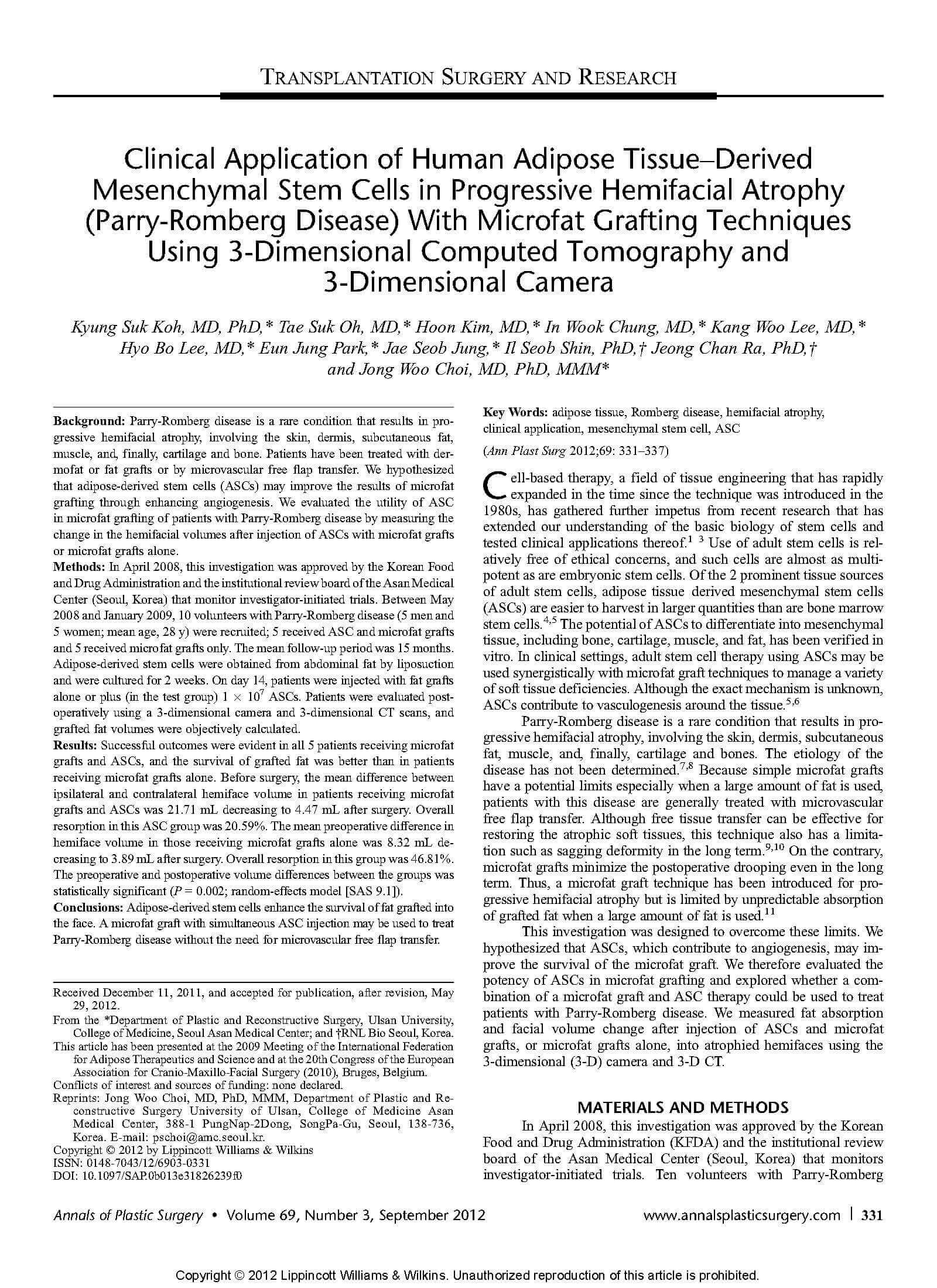 パリーロンバーグ症候群への脂肪由来間葉系幹細胞治療