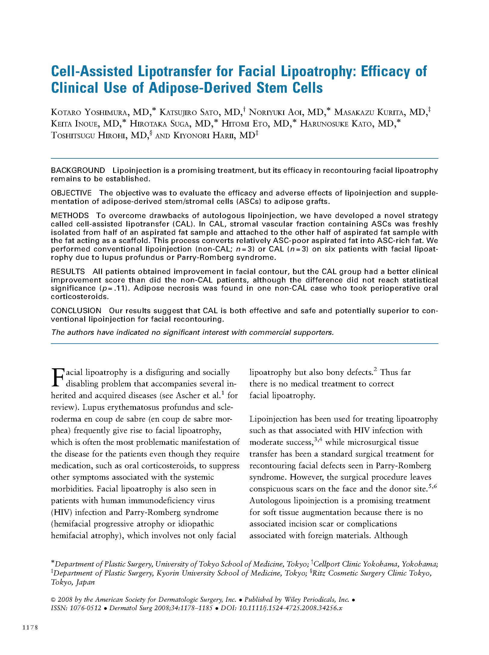脂肪由来幹細胞による顔面脂肪萎縮症に対する臨床応用