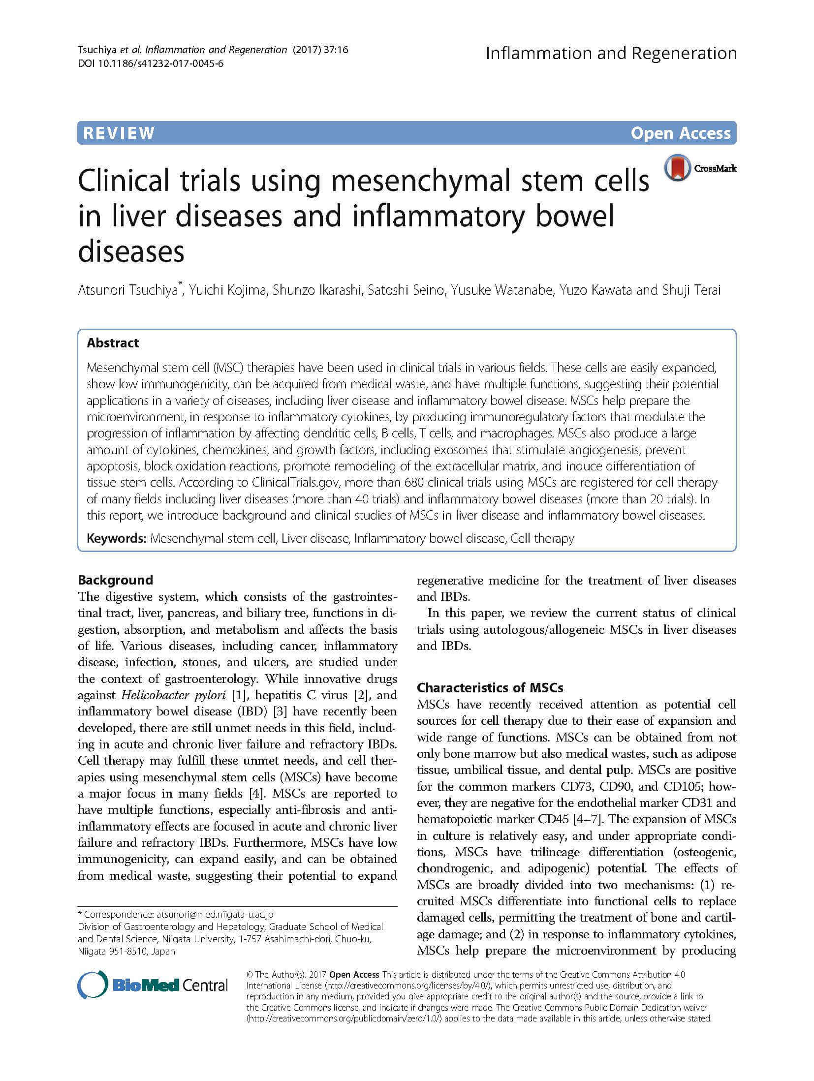 間葉系幹細胞を用いた肝疾患および炎症性腸疾患における臨床試験
