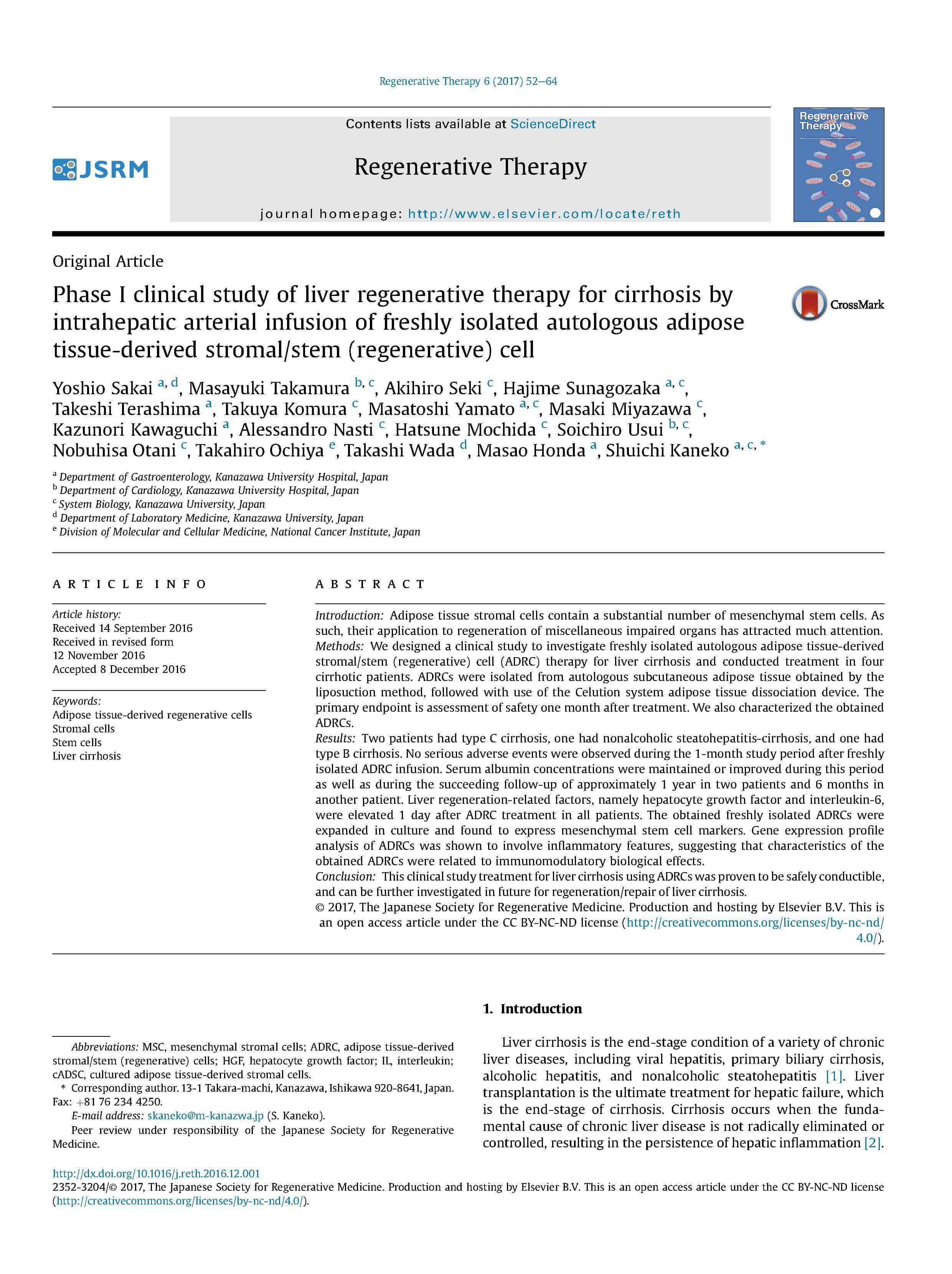 脂肪由来間葉系幹細胞の肝動脈内投与による肝再生療法第I相臨床試験