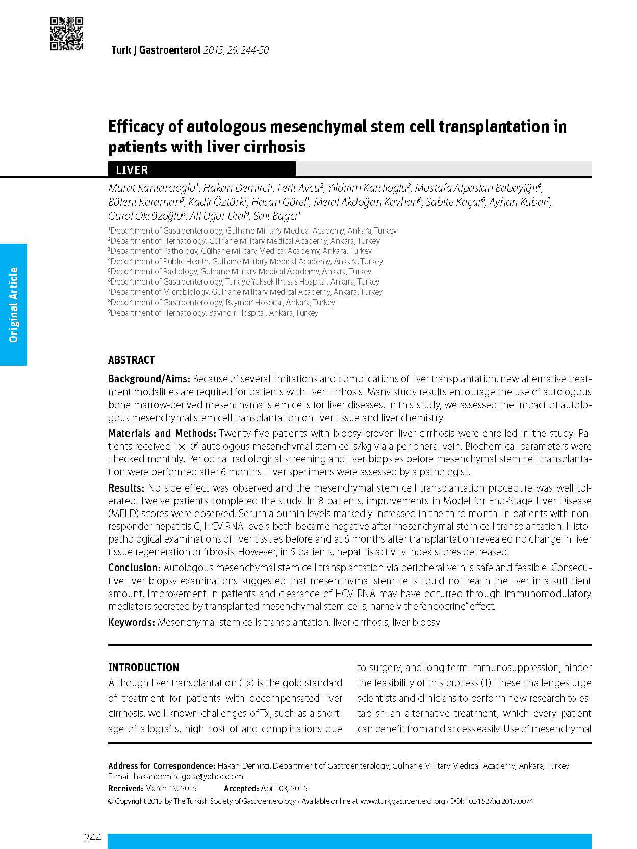 肝硬変患者における自家間葉系幹細胞移植の有効性