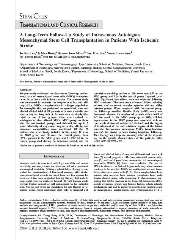 虚血性脳卒中患者における自己間葉系幹細胞移植の長期追跡調査