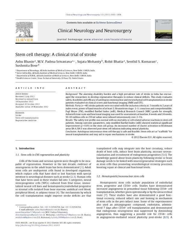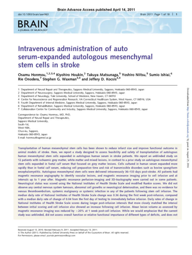 骨髄間葉系幹細胞の自家移植による安全性と神経学的評価