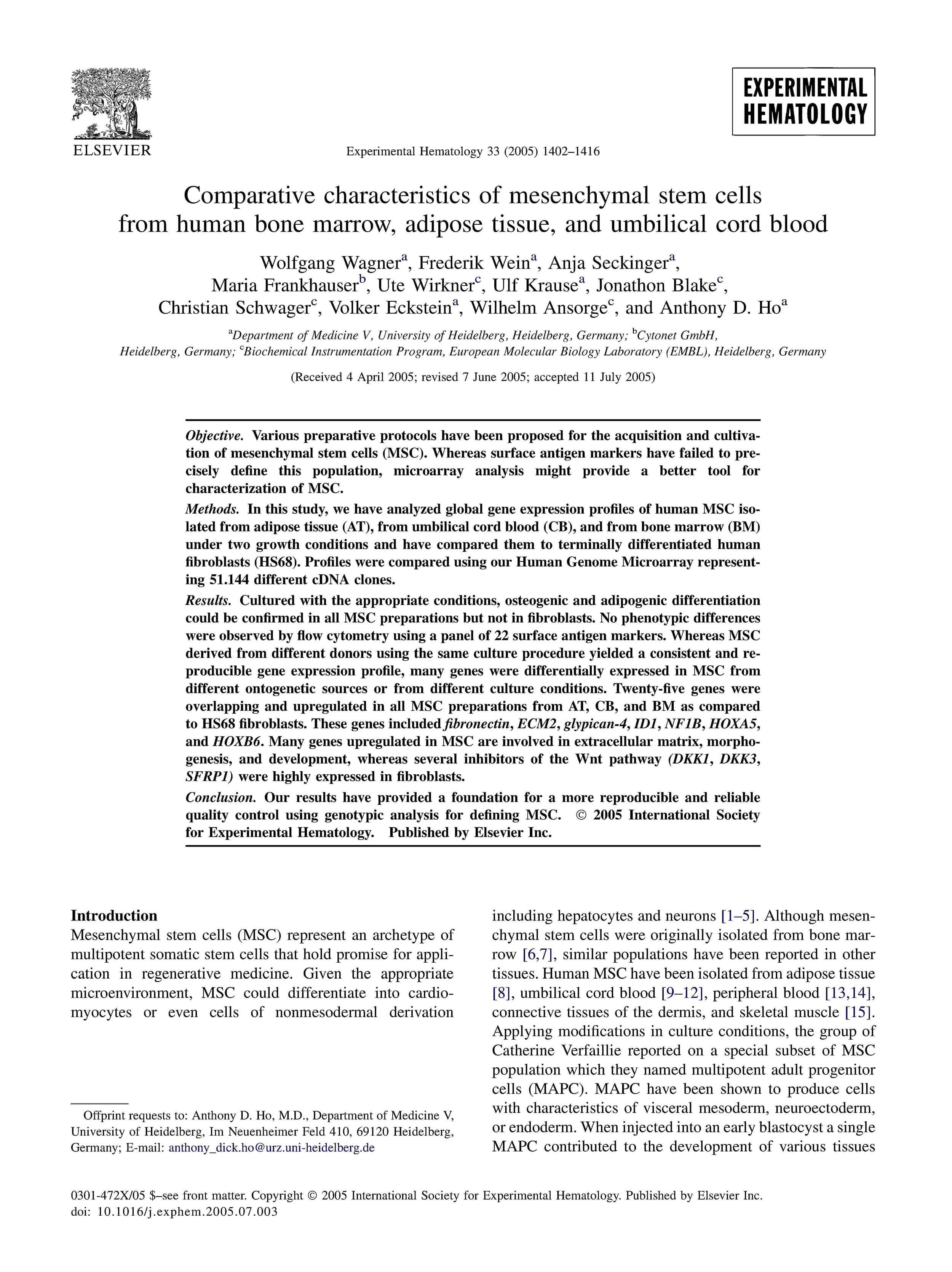 ヒト骨髄、脂肪組織および臍帯血由来の間葉系幹細胞の特性比較